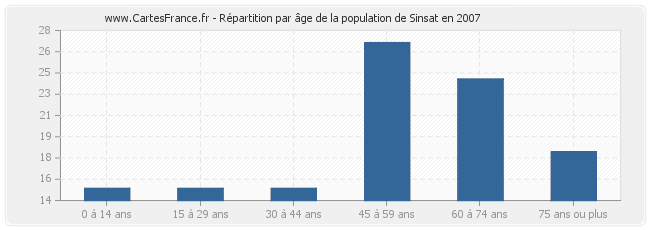- Population de Sinsat de 75 ans ou plus : 14 habitants