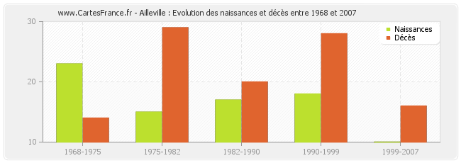 Ailleville : évolution des naissances et décès de 1968 à 2007