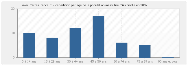 - Hommes de 45 à 59 ans habitant Arconville : 17