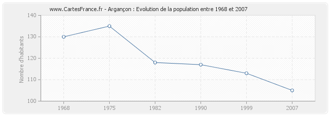 La population d'Argançon était de 105 habitants en 2007, 113 habitants en 1999, 117 habitants en 1990, 118 habitants en 1982, 135 habitants en 1975 et 130 habitants en 1968.