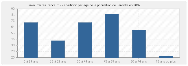 - Population de Baroville de 60 à 74 ans : 45 habitants