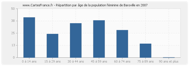 Répartition de la population féminine de Baroville par âge en 2007 :
