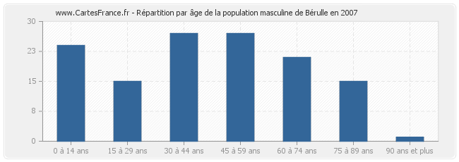 Répartition de la population masculine de Bérulle par âge en 2007 :