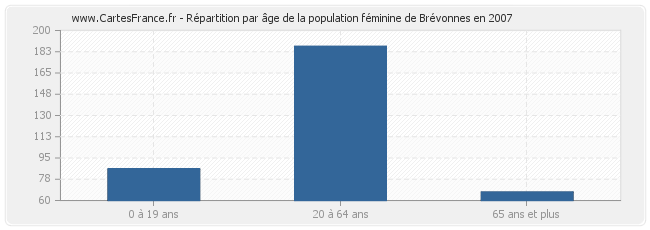 - Femmes de 20 à 64 ans habitant Brévonnes : 187