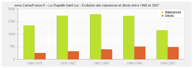La Chapelle-Saint-Luc : évolution des naissances et décès de 1968 à 2007