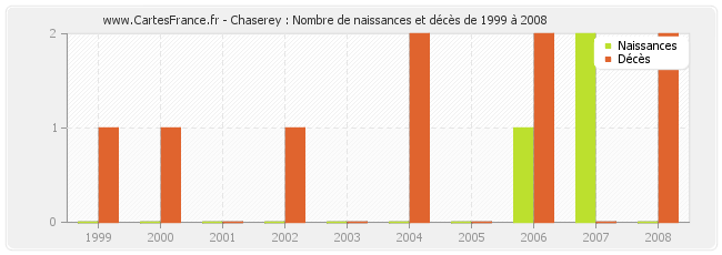 - Chaserey en 2008 : 0 naissances et 2 décès