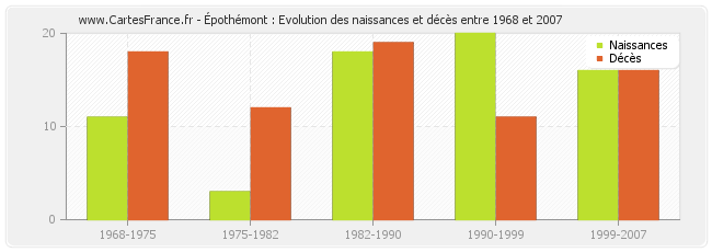 Épothémont : évolution des naissances et décès de 1968 à 2007