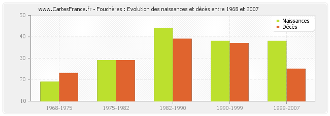 Fouchères : évolution des naissances et décès de 1968 à 2007