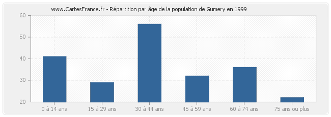 - Population de Gumery de 30 à 44 ans : 56 habitants