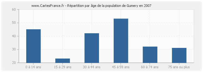 - Population de Gumery de 45 à 59 ans : 53 habitants