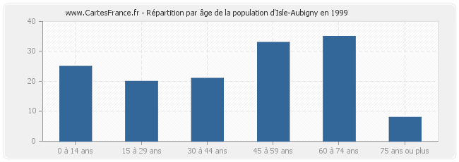 - Population d'Isle-Aubigny de 60 à 74 ans : 35 habitants