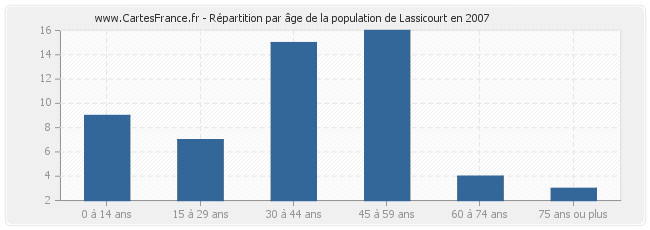 - Population de Lassicourt de 45 à 59 ans : 16 habitants