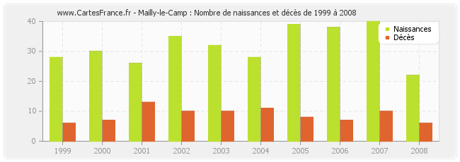 - Mailly-le-Camp en 2007 : 40 naissances et 10 décès