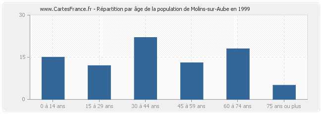 - Population de Molins-sur-Aube de 30 à 44 ans : 22 habitants