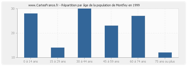 - Population de Montfey de 30 à 44 ans : 30 habitants