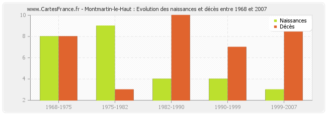 Montmartin-le-Haut : évolution des naissances et décès de 1968 à 2007