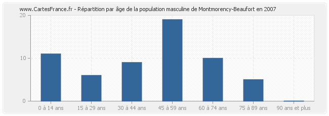 - Hommes de 45 à 59 ans habitant Montmorency-Beaufort : 19
