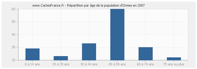 - Population d'Ormes de 45 à 59 ans : 60 habitants
