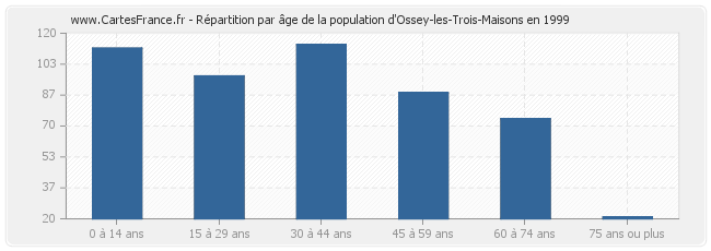 - Population d'Ossey-les-Trois-Maisons de 30 à 44 ans : 114 habitants
