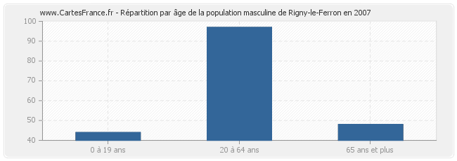 - Hommes de 0 à 19 ans habitant Rigny-le-Ferron : 44