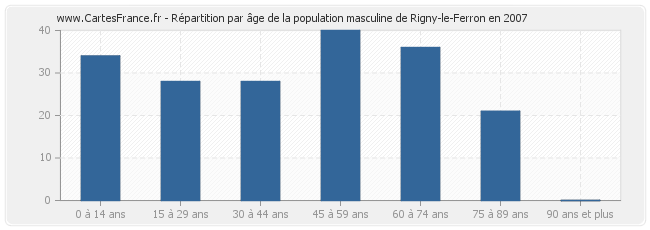 Répartition de la population masculine de Rigny-le-Ferron par âge en 2007 :