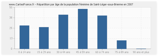 Répartition de la population féminine de Saint-Léger-sous-Brienne par âge en 2007 :