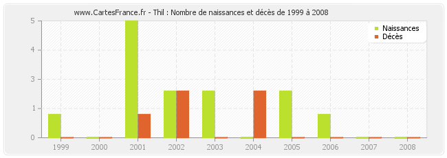 La population de Thil était de 159 habitants en 2007, 138 habitants en 1999, 120 habitants en 1990, 157 habitants en 1982, 161 habitants en 1975 et 195 habitants en 1968.