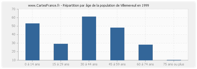Répartition de la population de Villemereuil par âge en 1999 :