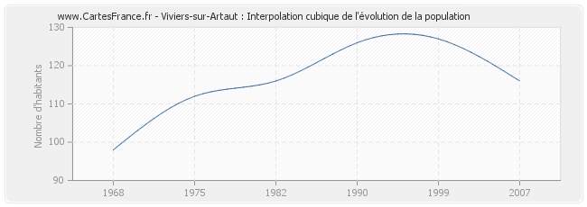 Cette courbe reprend l'historique de la population de Viviers-sur-Artaut de 1968 à 2007 en interpolation cubique. Ceci permet d'obtenir plus précisément la population de la commune de Viviers-sur-Artaut les années ou aucun recensement n'a été effectué.