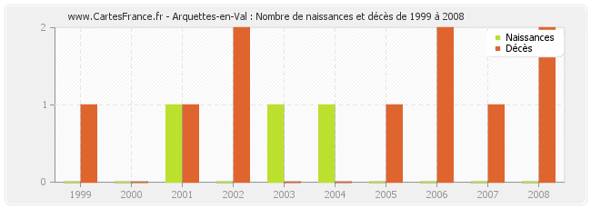 - Arquettes-en-Val en 2008 : 0 naissances et 2 décès