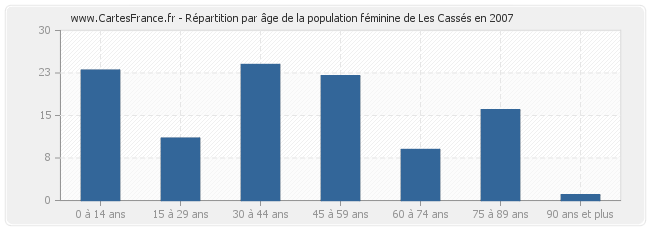 - Le nombre de femmes habitant Les Cassés en 2007 était de 106