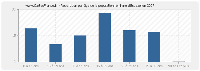 - Femmes de 45 à 59 ans habitant Espezel : 28