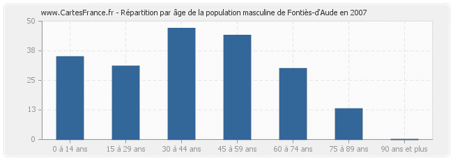 Répartition de la population masculine de Fontiès-d'Aude par âge en 2007 :