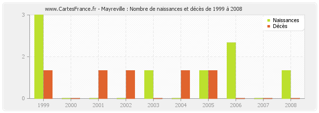 - Mayreville en 2008 : 1 naissances et 0 décès