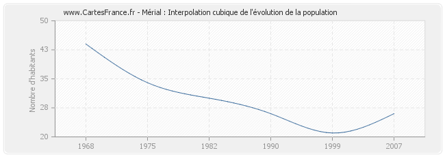 Cette courbe reprend l'historique de la population de Mérial de 1968 à 2007 en interpolation cubique. Ceci permet d'obtenir plus précisément la population de la commune de Mérial les années ou aucun recensement n'a été effectué.