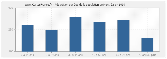 Répartition de la population de Montréal par âge en 1999 :
