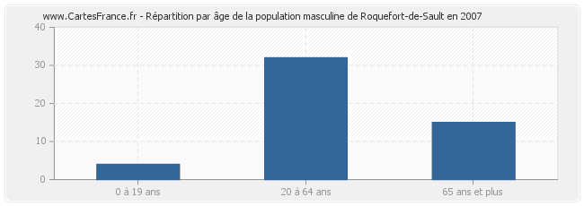 - Hommes de 20 à 64 ans habitant Roquefort-de-Sault : 32