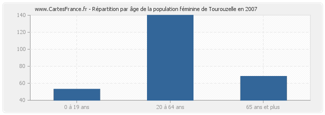 Répartition de la population féminine de Tourouzelle par âge en 2007 :