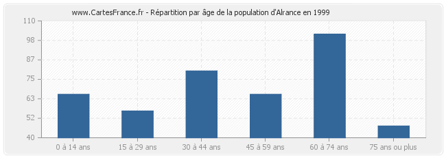 - Population d'Alrance de 60 à 74 ans : 102 habitants