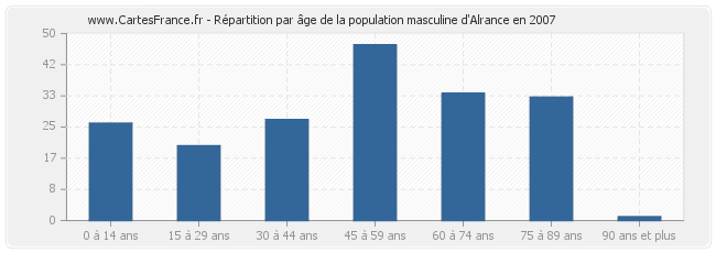 - Hommes de 45 à 59 ans habitant Alrance : 47