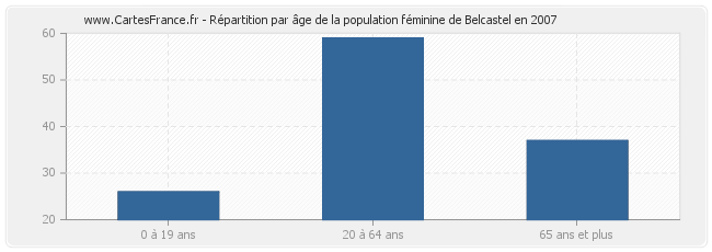 Répartition de la population féminine de Belcastel par âge en 2007 :