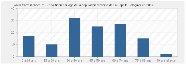 - Femmes de 30 à 44 ans habitant La Capelle-Balaguier : 32