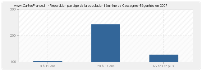 - Femmes de 20 à 64 ans habitant Cassagnes-Bégonhès : 242