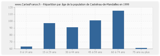 - Population de Castelnau-de-Mandailles de 60 à 74 ans : 115 habitants