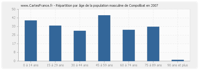 Répartition de la population masculine de Compolibat par âge en 2007 :