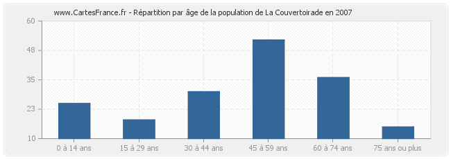 - Population de La Couvertoirade de 45 à 59 ans : 52 habitants
