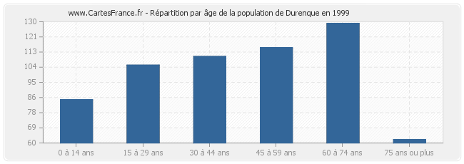 - Population de Durenque de 60 à 74 ans : 129 habitants