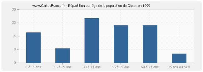 - Population de Gissac de 45 à 59 ans : 21 habitants