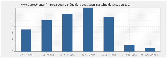 - Hommes de 45 à 59 ans habitant Gissac : 14