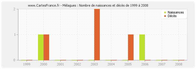 - Mélagues en 2008 : 0 naissances et 0 décès
